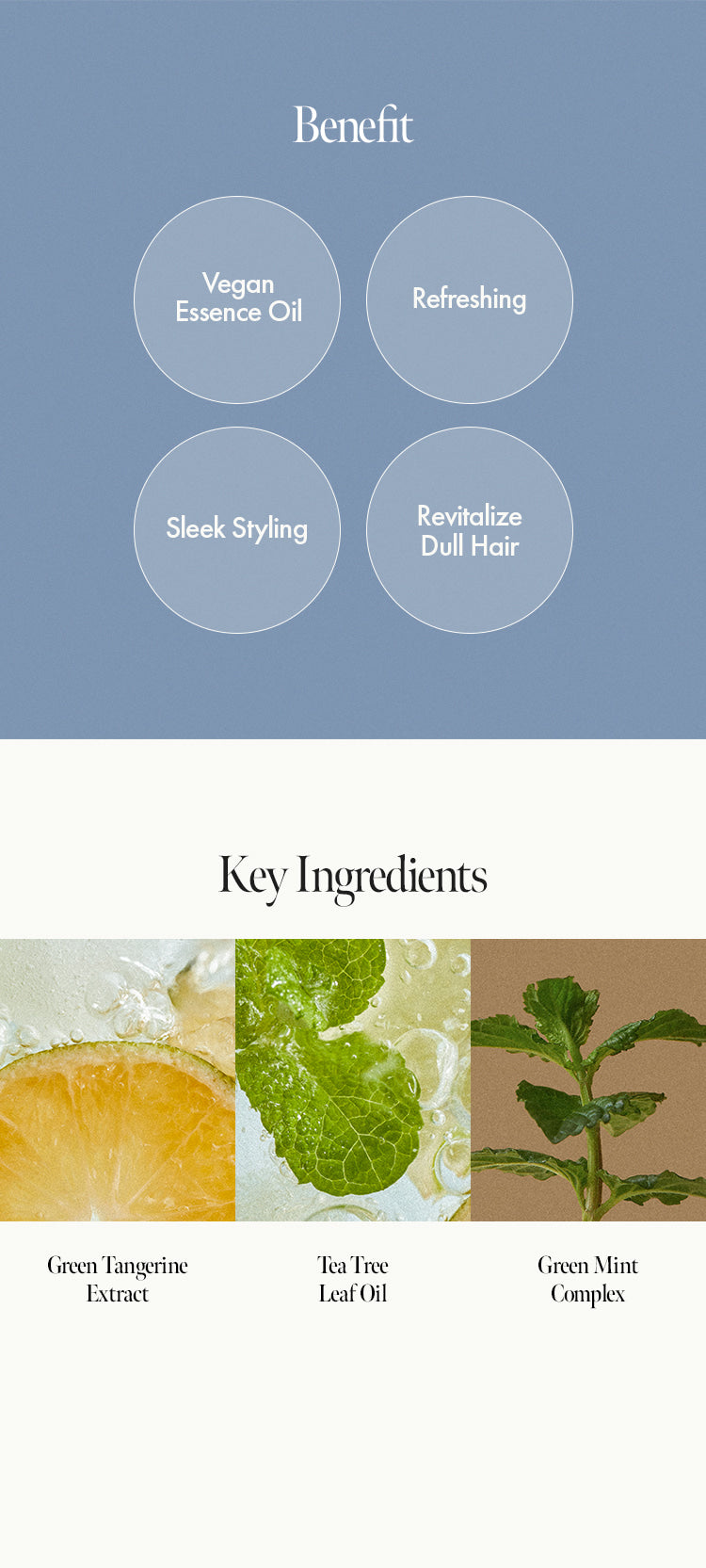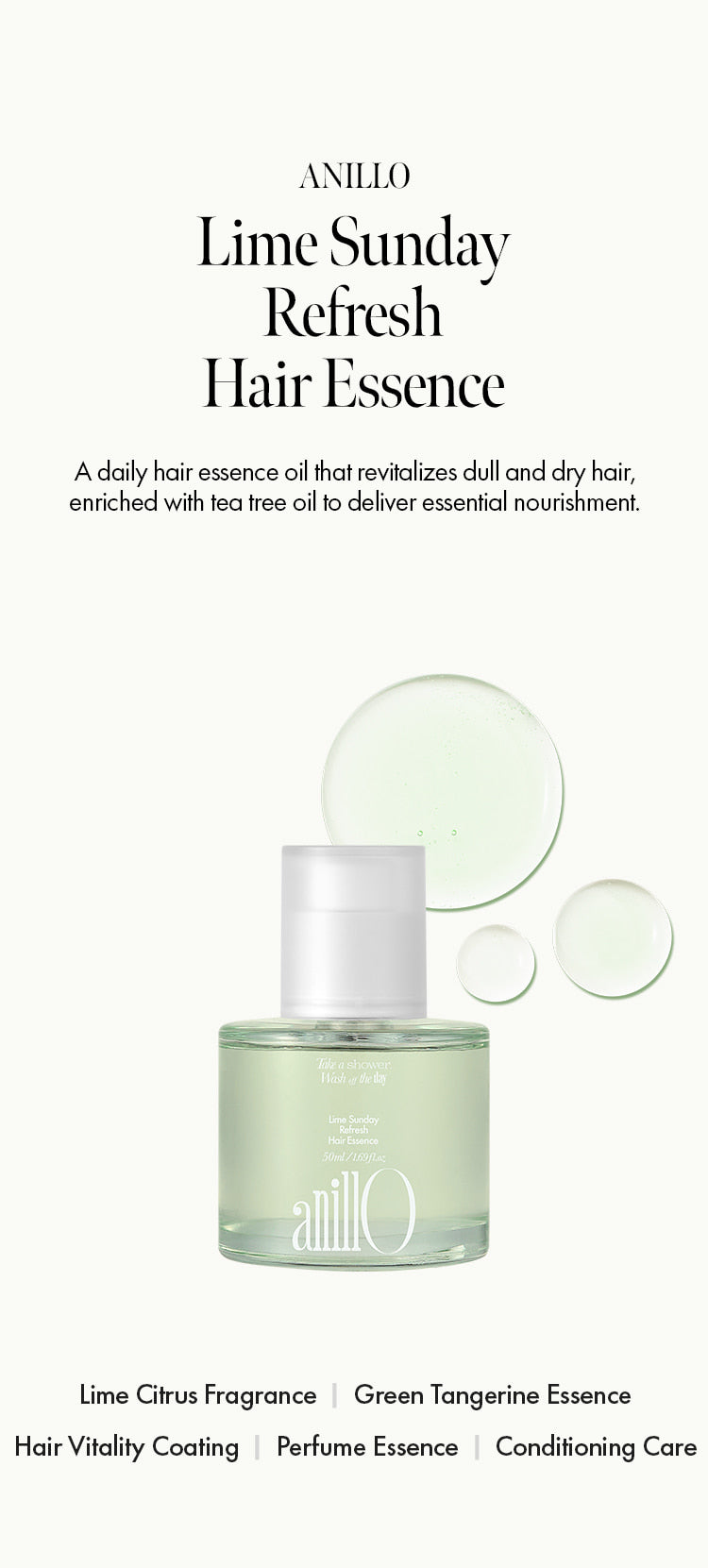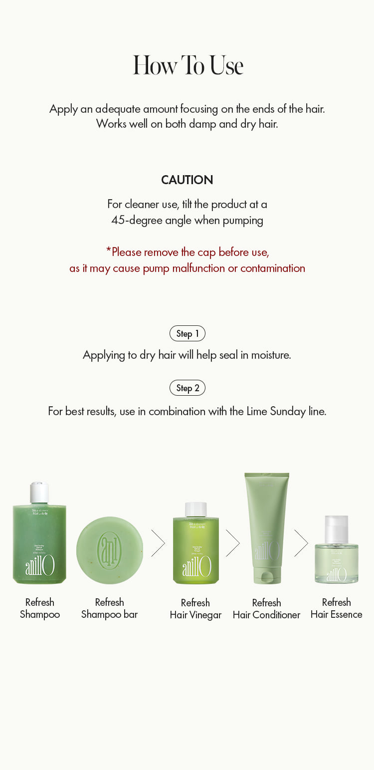 Lightweight leave-in essence with citrus oils + proteins to smooth, protect, and boost shine while keeping hair soft and weightless.