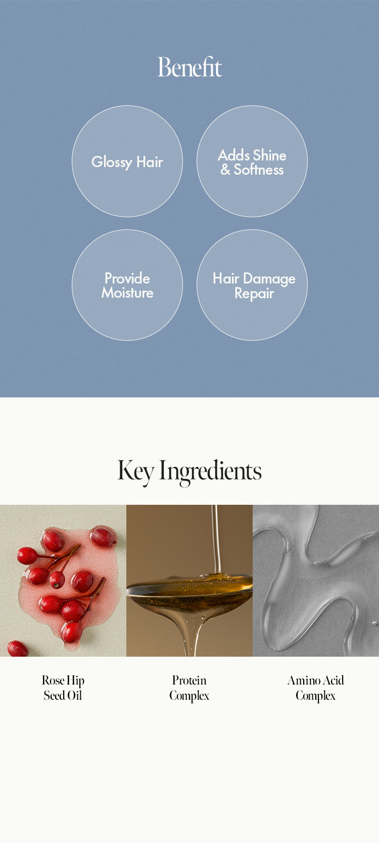 Rosa Canina & Camellia Seed Oils – replenish essential lipids, enhance shine and improve softness.